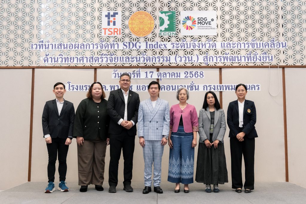 17 ตุลาคม 2568 – ศูนย์วิจัยและสนับสนุนเป้าหมายการพัฒนาที่ยั่งยืนมหาวิทยาลัยธรรมศาสตร์ ร่วมกับ สำนักงานคณะกรรมการส่งเสริมวิทยาศาสตร์ วิจัย และนวัตกรรม (สกสว.) และคณะทำงานระดับภาคทั้ง 6 ภาค ได้แก่ เหนือ ตะวันออกเฉียงเหนือ กลาง ตะวันออก ใต้ และใต้ชายแดน ภายใต้โครงการจัดทำแผนบูรณาการด้านวิทยาศาสตร์วิจัยและนวัตกรรมเพื่อการพัฒนาเชิงพื้นที่อย่างยั่งยืน หรือ “Area Need” ได้จัดเวทีนำเสนอผลการจัดทำ SDG Index ระดับจังหวัด และการขับเคลื่อนด้านวิทยาศาสตร์วิจัยและนวัตกรรม (ววน.) สู่การพัฒนาที่ยั่งยืน ณ ห้องไฮเดรนเยีย 1 ชั้น 6 อาคารแกรนด์ โรงแรม ทีเค. พาเลซ & คอนเวนชั่น