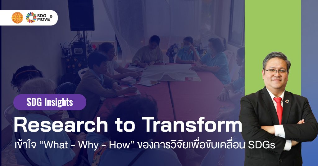 SDG Insights ฉบับนี้ ผศ.ชล บุนนาค ผู้อำนวยการศูนย์วิจัยเเละสนับสนุนเป้าหมายการพัฒนาที่ยั่งยืน (SDG Move) จึงเขียนถึงการพลิกโฉมงานวิจัยเพื่อ SDGs ที่มุ่งหมายมากกว่าเเค่การศึกษาหาคำตอบเเต่วาดหวังไปถึงการสร้างการเปลี่ยนเเปลงที่จะทำให้ความยั่งยืนทางสังคม เศรษฐกิจ เเละสิ่งเเวดล้อมเกิดขึ้นจริงได้