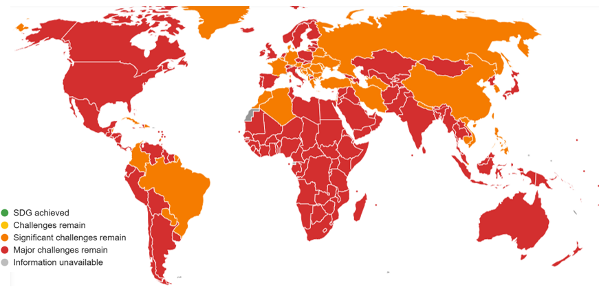 ภาพที่ 2 ภาพรวมผลการดำเนินงานของแต่ละประเทศใน SDG 2 Zero Hunger