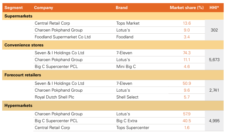 โดยมีการเรียกปรากฏการณ์นี้ว่า “Supermarket Revolution” ซึ่งเกิดขึ้นในหลายประเทศของเอเชีย ซึ่งเกิดขึ้นคู่ขนานไปพร้อมการเติบโตของเศรษฐกิจและเมือง การเพิ่มขึ้นของครัวเรือนเดี่ยวและวิถีชีวิตที่เปลี่ยนไป ที่ทำให้คนมีเวลาประกอบอาหารรับประทานเองที่บ้านน้อยลง แต่รับประทานอาหารนอกบ้านหรืออาหารแปรรูป (processed food) ต่าง ๆ ไปจนถึงอาหารแปรรูปขั้นสูง (ultra-processed food: UPF) ที่มีการปรุงแต่งสี กลิ่น และมีอายุเก็บรักษาที่ยาวนานมากขึ้น [18] ซึ่งการแปรรูป ไปจนถึงการค้าที่เน้นความสะดวก ความเร็ว และความหลากหลายนี้ นำไปสู่บทบาทของการค้าสมัยใหม่จึงเริ่มเข้ามาซึ่งส่วนใหญ่จะเป็นกลุ่มบริษัทรายใหญ่ (ตามตารางที่ 4) ซึ่งในกลุ่มสินค้าอาหารโดยเฉลี่ยร้อยละ 70 มีการซื้อขายผ่านร้านค้าปลีกสมัยใหม่เหล่านี้