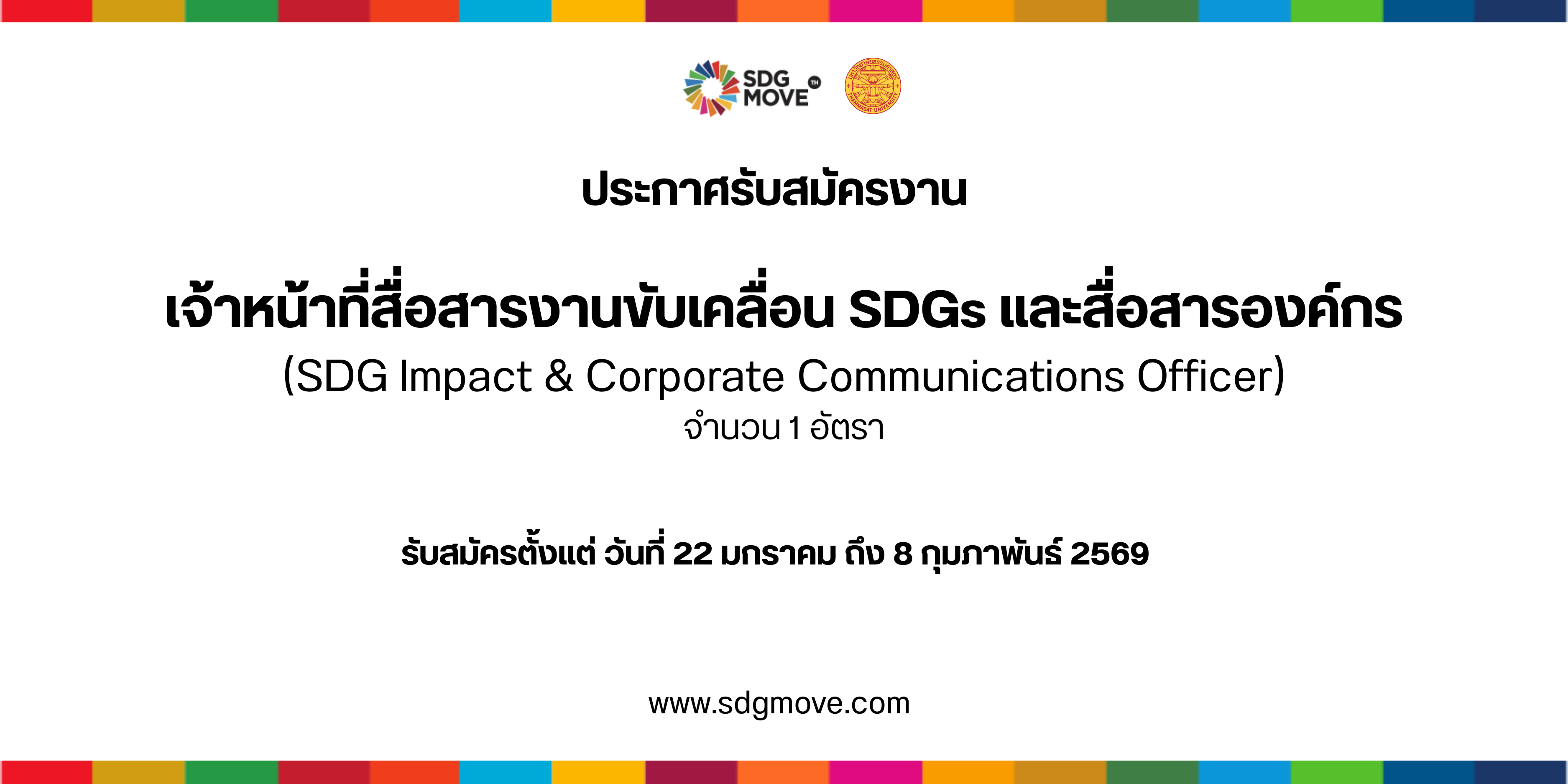 เจ้าหน้าที่สื่อสารงานขับเคลื่อน SDGs และสื่อสารองค์กร (SDG Impact & Corporate Communications Officer) จำนวน 1 อัตรา