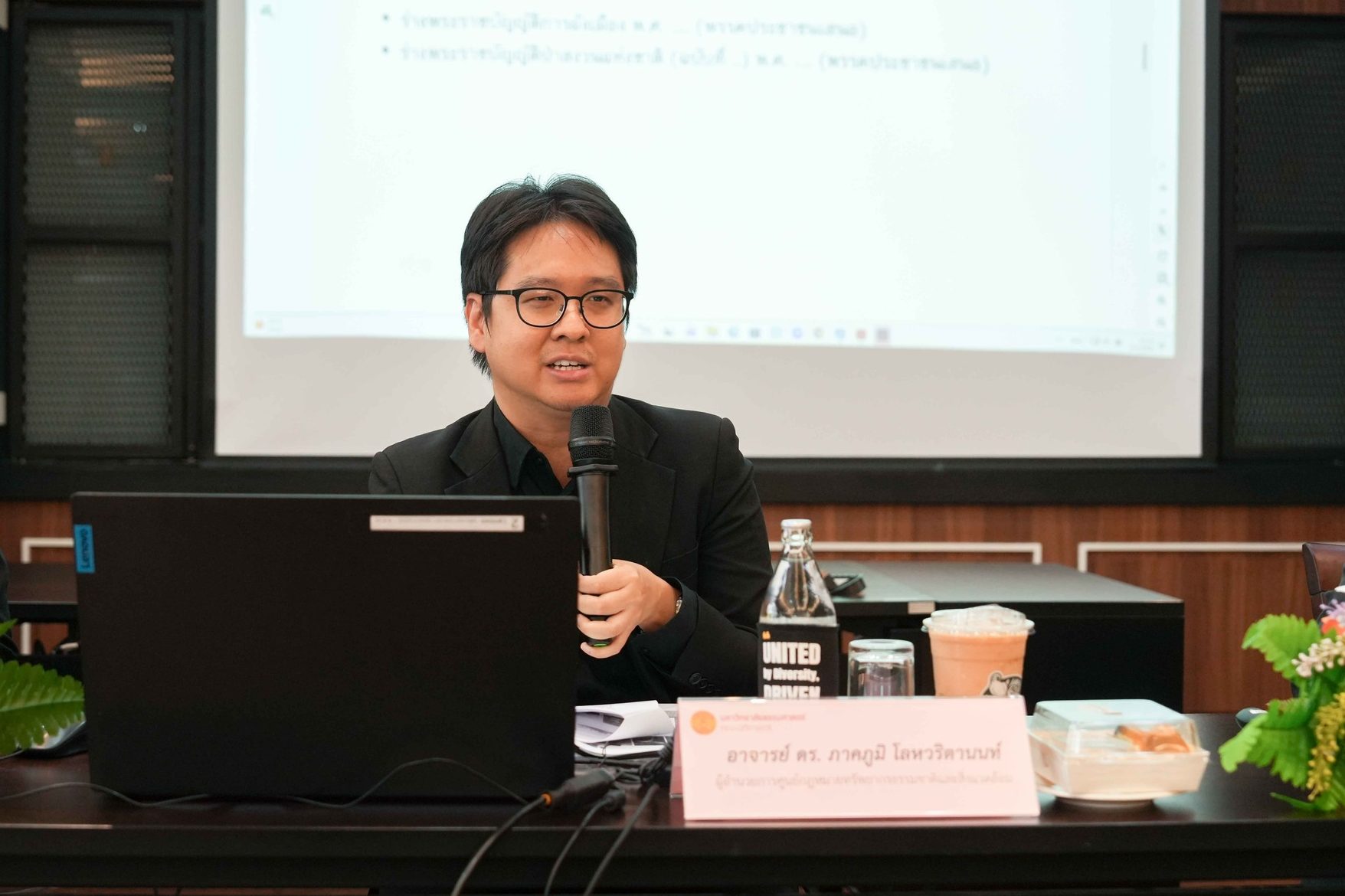 อาจารย์ ดร.ภาคภูมิ โลหวริตานนท์ ผู้อำนวยการศูนย์กฎหมายทรัพยากรธรรมชาติและสิ่งแวดล้อม ในฐานะผู้นำเสวนา ได้ฉายภาพรวมของกฎหมายสิ่งแวดล้อมในช่วงอายุสภา 2 ปี 6 เดือนที่ผ่านมา โดยชี้ให้เห็นว่าแม้จะมี Movement ของกฎหมายเกิดขึ้นตลอดเวลา แต่ระดับความเร็วและความเข้มแข็งในการขับเคลื่อนกลับ “ชะงักงัน” และ “ไม่ Active เหมือนกฎหมายกลุ่มอื่นๆ” โดยเฉพาะเมื่อเทียบกับกฎหมายเศรษฐกิจหรือกฎหมายสังคมอย่างสมรสเท่าเทียมที่ไปเร็วมาก