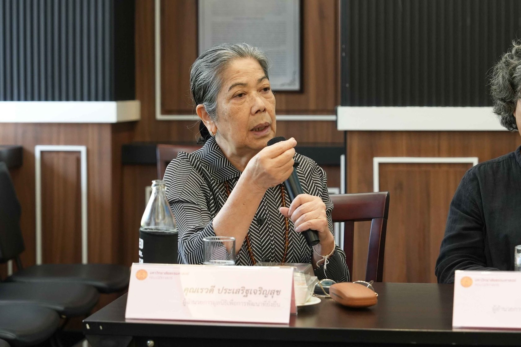 คุณเรวดี ประเสริฐเจริญสุข จากมูลนิธิเพื่อการพัฒนาที่ยั่งยืน เริ่มต้นด้วยการตั้งคำถามถึงทิศทางนโยบายสิ่งแวดล้อมทางทะเลที่มักมองแยกส่วน โดยย้ำชัดว่าการจะบรรลุความยั่งยืนได้นั้น “มันจะต้องเชื่อมโยงกับผู้คนที่ใช้ทรัพยากรทะเลและชายฝั่ง” ไม่ใช่ดูเพียงประเด็นสิ่งแวดล้อมโดดๆ แต่ต้องมองภาพรวมที่มีมนุษย์อยู่ในระบบนิเวศนั้นด้วย