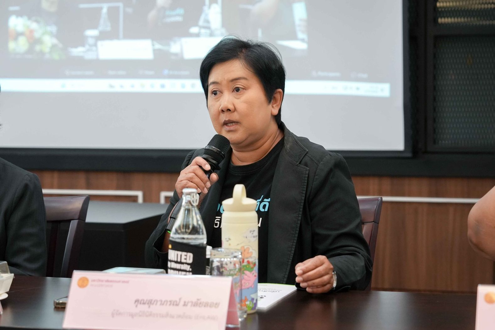 คุณเพ็ญโฉม แซ่ตั้ง จากมูลนิธิบูรณะนิเวศ เริ่มต้นด้วยการฉายภาพความหวังต่อรัฐบาลใหม่ว่าจะให้ความสำคัญกับสิ่งแวดล้อมมากขึ้น เพราะขณะนี้คนรุ่นต่อๆ ไปกำลังเผชิญกับ “วิกฤตการณ์ระดับโลก” 3 เรื่องหลัก คือ ภาวะโลกรวน ความสูญเสียความหลากหลายทางชีวภาพ และที่สำคัญที่สุดคือ “มลพิษ” โดยเฉพาะกากอุตสาหกรรมอันตรายและขยะพลาสติกที่ทั่วโลกกำลังตื่นตัวอย่างยิ่ง