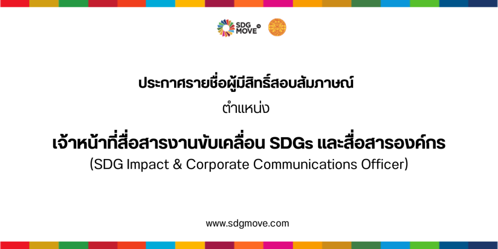 เรื่อง ประกาศรายชื่อผู้มีสิทธิ์สัมภาษณ์ ตำแหน่ง เจ้าหน้าที่สื่อสารงานขับเคลื่อน SDGs และสื่อสารองค์กร