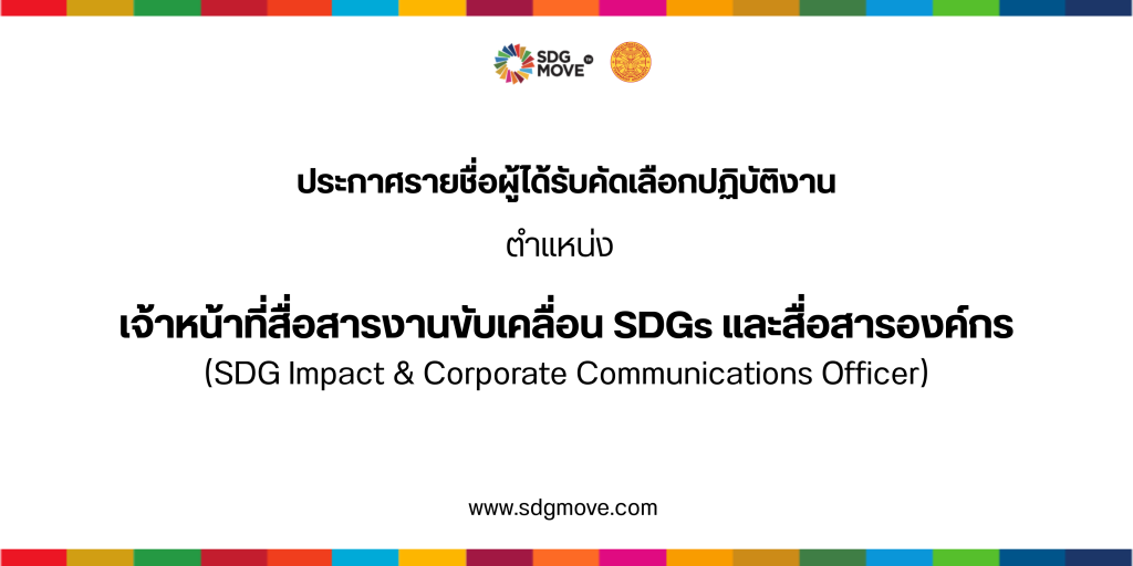 เรื่อง ประกาศรายชื่อผู้ได้รับคัดเลือกปฏิบัติงาน ตำแหน่ง เจ้าหน้าที่สื่อสารงานขับเคลื่อน SDGs และสื่อสารองค์กร